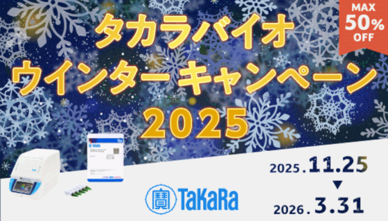 キャンペーン情報 CAMPAIGN 2025.12.03 サイエンス 3/31まで!2025年度タカラバイオウインターキャンペーン 3/31まで!2025年度タカラバイオウインターキャンペーン キャンペーン期間:2025年11月25日(火)~2026年3月31日(火) キャンペーン詳細PDFパンフレット 7.13MB タカラバイオ(株)キャンペーン詳細サイト キャンペーン情報一覧に戻る トップ キャンペーン情報 サイエンス 3/31まで!2025年度タカラバイオウインターキャンペーン