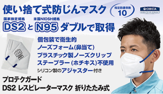 感染予防対策 「DS2」「N95」ダブル取得の折りたたみマスク
