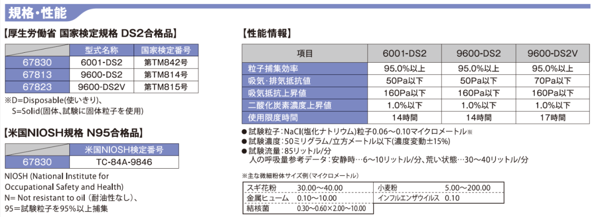 ・米国NIOSH規格N95:検定番号 TC-84A-9846